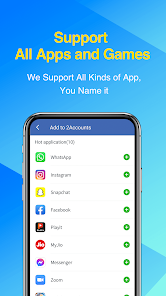 برای افزودن یک کلون برای یک برنامه جدید که در صفحه اصلی 2 حساب موجود نیست، فقط نماد مثبت را در گوشه پایین برنامه فشار دهید. شما را به لیست برنامهها هدایت میکند که همه برنامههای سازگار را که میتوان با حساب دیگری شبیهسازی کرد و وارد آن شد، نمایش میدهد. درباره سیاست حفظ حریم خصوصی آن بیشتر بخوانید .